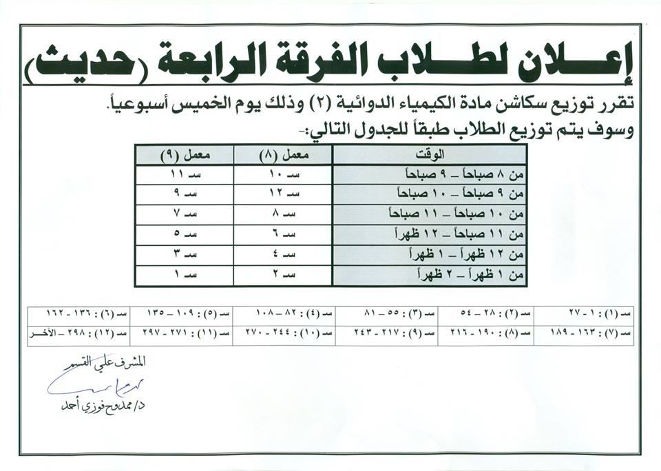 إعلان لطلاب الفرقة الأولى والفرقةالرابعة (حديث) إعلان لطلاب الفرقة الأولى والفرقة الرابعة (حديث) تصفّح المقالات اليوم الثانى من فعاليات درع الجامعة الثالث لنشاط الجوالةإعلان هام لفحص تظلمات الفرقة الأولى”برنامج الصيدلة الإكلينيكية”
