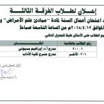 إعلان لطلاب الفرقة الثالثة