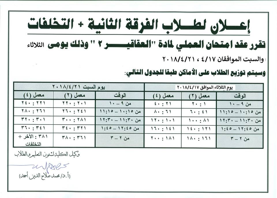 إعلان لطلاب الفرقة الثانية+التخلفات تصفّح المقالات إعلان هام عن فحص التظلماتإعلان لطلاب الفرقة الرابعة (قديم)