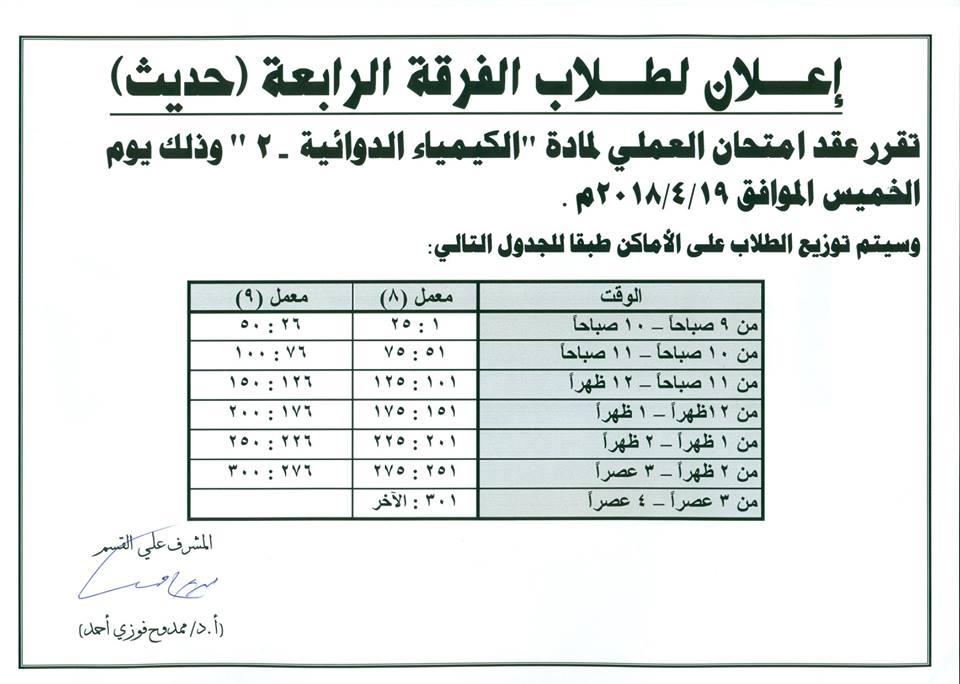 إعلان لطلاب الفرقة الرابعة (حديث) تصفّح المقالات إعلان لطلاب الفرقة الأولى (صيدلة إكلينيكية)إعلان لطلاب الفرقة الرابعة (قديم)