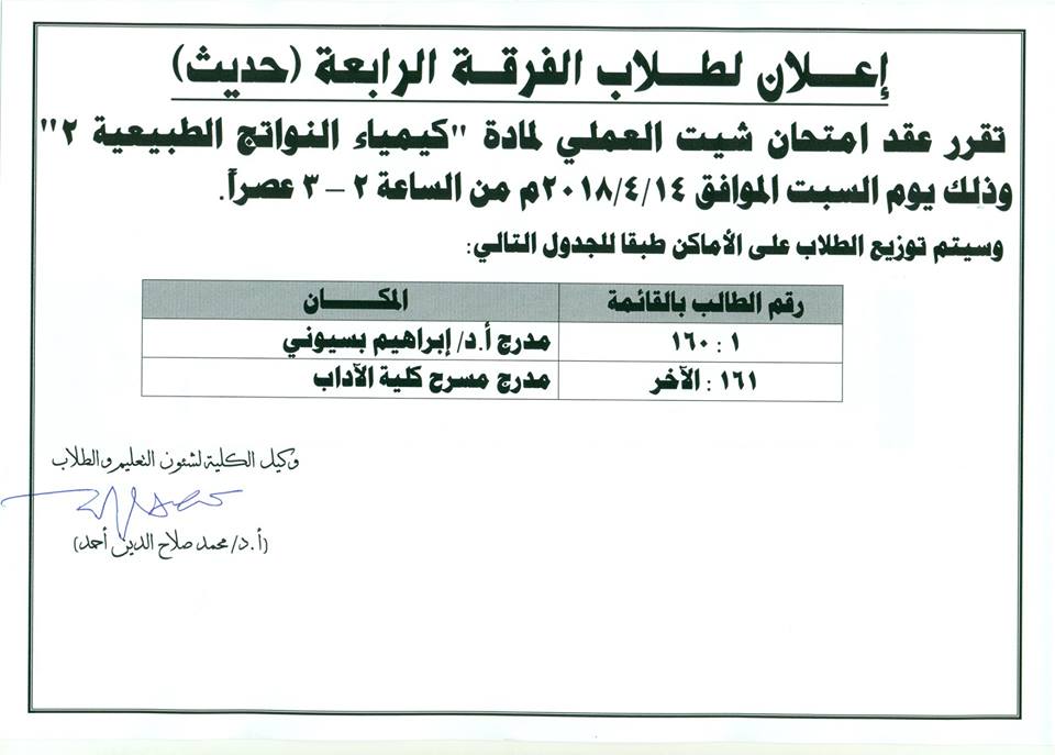 إعلان لطلاب الفرقة الرابعة (حديث) تصفّح المقالات إعلان لطلاب الفرقة الرابعة (قديم)إعلان لطلاب الفرقة الثالثة+التخلفات