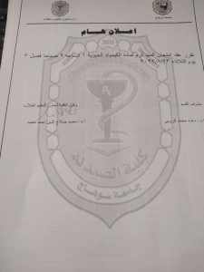 إعلان هام عن عقد إمتحان الميدتيرم لمادة الكيمياء الحيوية ١