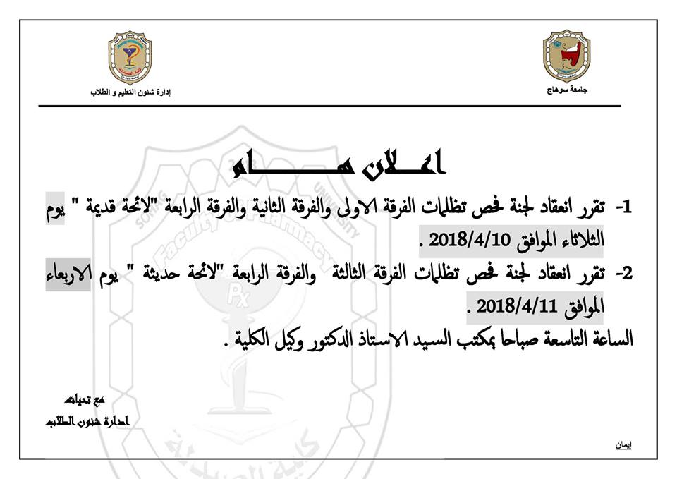 إعلان لطلاب الفرقة الثانية+التخلفات