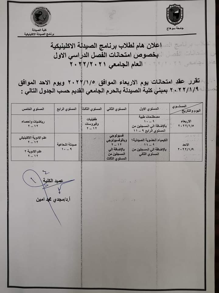 إعلان هام لطلاب برنامج الصيدلة الإكلينيكية إعلان هام لطلاب الصيدلة الإكلينيكية تصفّح المقالات جدول الإمتحانات الإلكترونية برنامج الصيدلة الإكلينيكية الفصل الدراسى الأول للعام الجامعى ٢٠٢٢/٢٠٢١مدليل لجان إمتحانات المستوى الأول _فارم دى لطلاب برنامج الصيدلة الإكلينيكية الفصل الدراسي الأول للعام الجامعى ٢٠٢١_٢٠٢٢م