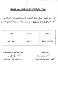 إعلان هام لطلاب الفرقة الأولى عام إعلان هام لطلاب الفرقة الأولى عام تصفّح المقالات إعلان هام لطلاب الفرقة الخامسة كلينيكالإعلان هام لطلاب الفرقة الثانية عام