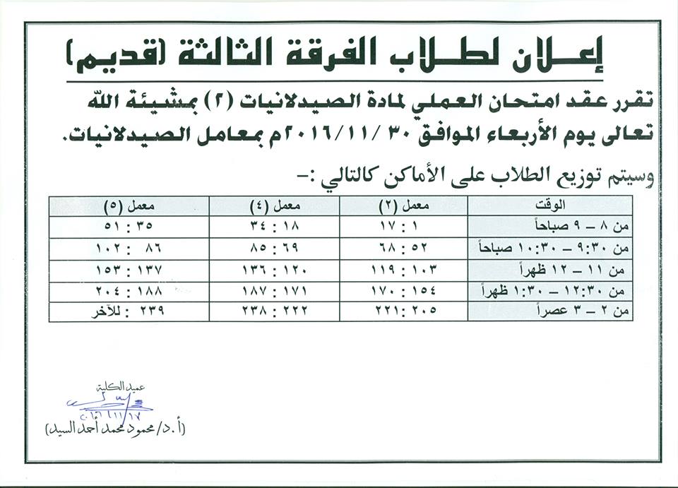 إعلان هام لطلاب الفرقة الثالثة (قديم )