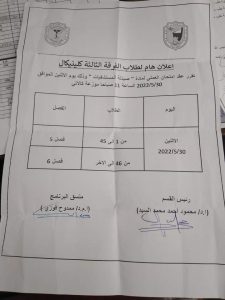 إعلان هام لطلاب الفرقة الثالثة كلينيكال إعلان هام لطلاب الفرقة الثالثة كلينيكال تصفّح المقالات إعلان هام لطلاب الفرقة الثانية جينيرالإعلان هام لطلاب الفرقة الثالثة جينيرال