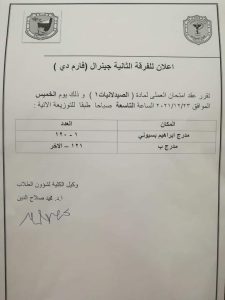 إعلان هام لطلاب الفرقة الثانية جينيرال⁦ فارم دى