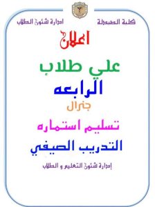 إعلان هام لطلاب الفرقة الرابعة جينيرال إعلان هام لطلاب الفرقة الرابعة جينيرال تصفّح المقالات إعلان هام لطلاب الفرقة الأولىإعلان هام لطلاب الفرقة الخامسة جينيرال