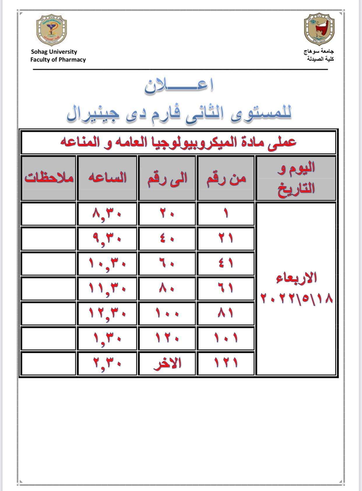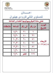 إعلان هام لطلاب المستوى الثانى فارم دى جينيرال