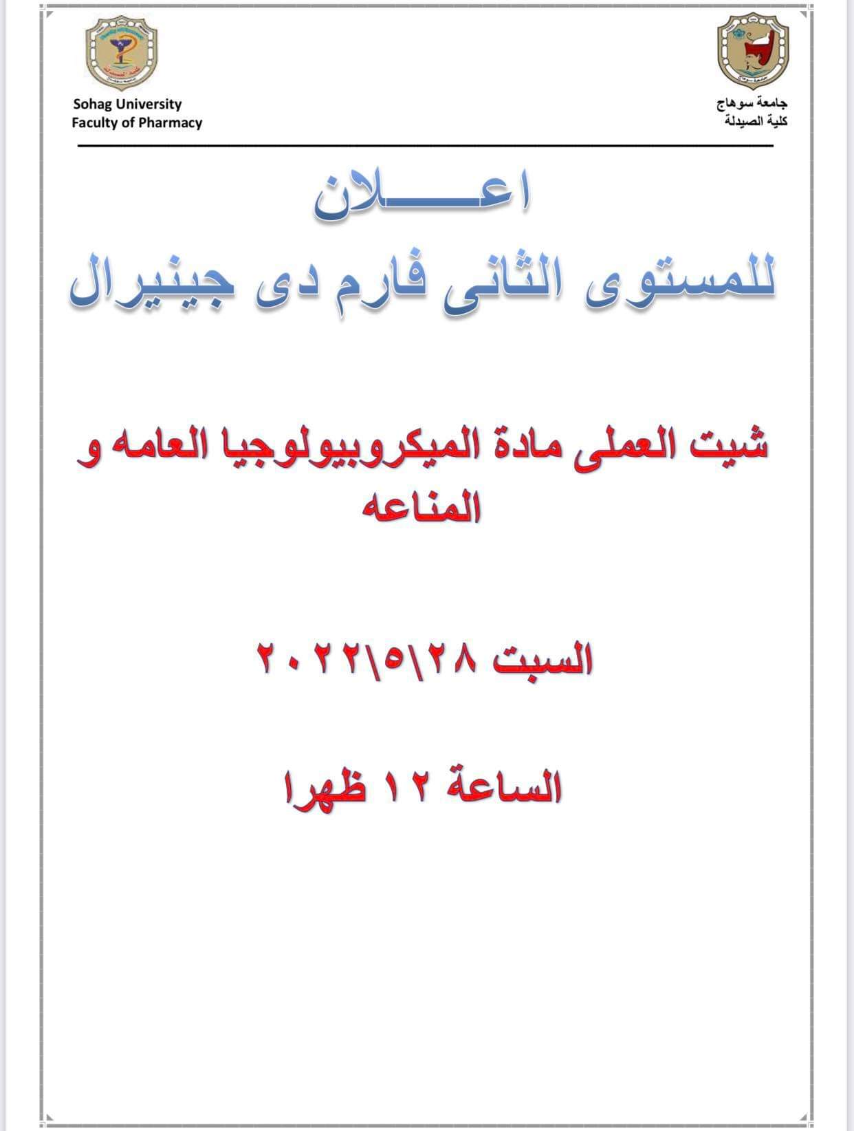 إعلان هام لطلاب المستوى الثانى فارم دى جينيرال إعلان هام لطلاب المستوى الثانى فارم دى جينيرال تصفّح المقالات إعلان هام لطلاب الفرقة الرابعة جينيرالمقترح جدول إمتحانات الفصل الدراسي الثاني _ برنامج الصيدلة الإكلينيكية العام الجامعي ٢٠٢١ / ٢٠٢٢م