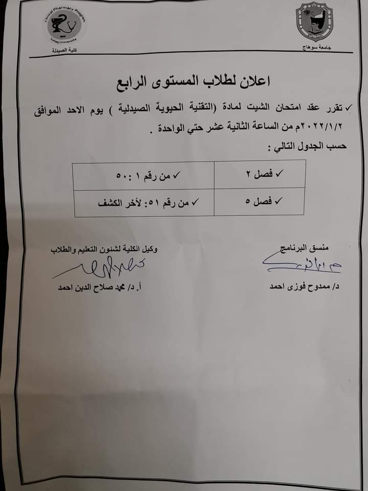 إعلان هام لطلاب المستوى الرابع إعلان هام لطلاب المستوى الرابع تصفّح المقالات إعلان هام لطلاب المستوى الثالثإعلان هام لطلاب الفرقة الرابعة كلينيكال