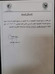 إعلان هام لطلاب برنامج الصيدلة الإكلينيكية