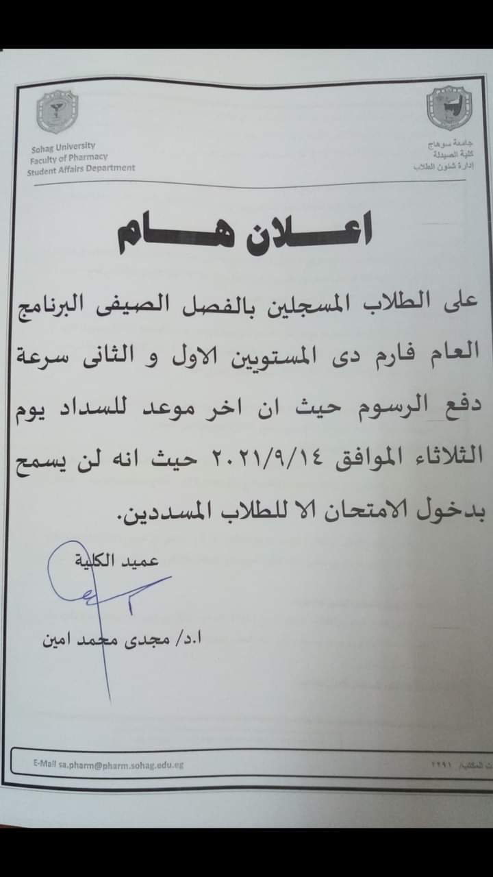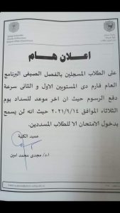 إعلان هام للطلاب المسجلين بالفصل الصيفى البرنامج العام فارم دى