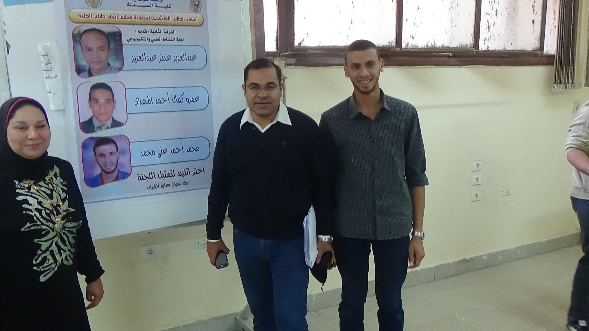 السيد الاستاذ الدكتور / إيمان السيد أبو ضيف عميد كلية الصيدلة والدكتور / محمود محمد أحمد السيد وكيل الكلية لشئون التعليم والطلاب يتفقدان إنتخابات إتحاد الطلاب التى شهدت إقبال كثيف من الطلاب.