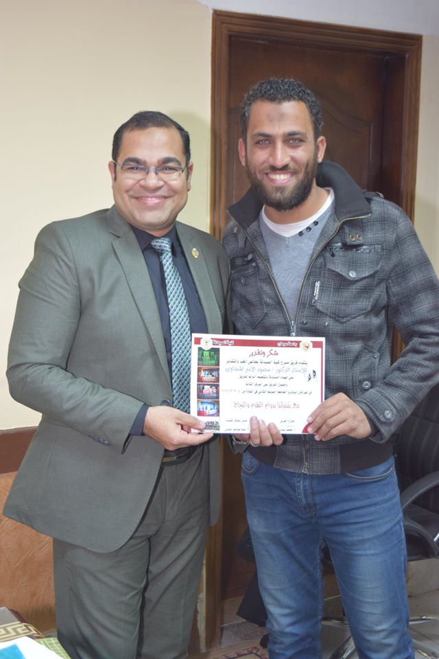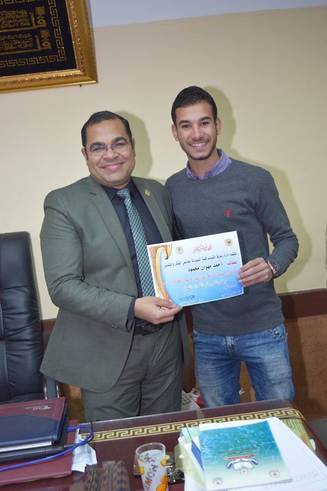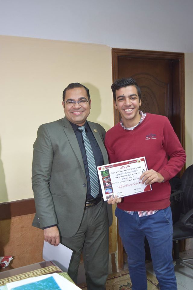 كرم أ.د/ محمود محمد أحمد السيد (عميد الكلية ) الطلاب الفائزين على مستوى الجامعة في الأنشطة (الثقافية – الإجتماعية – الرياضية – الفنية ) وذلك يوم الثلاثاء الموافق 20/12/2016م بمكتب العميد .