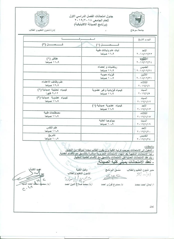 تعديل بسيط بجدول نصف العام للصيدلة الاكلينيكية