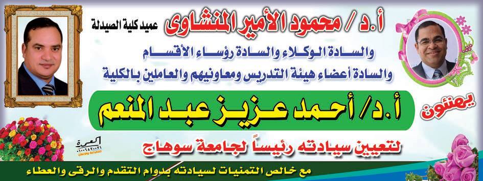 تهنئة لرئيس الجامعة /أ.د أحمد عزيز عبد المنعم