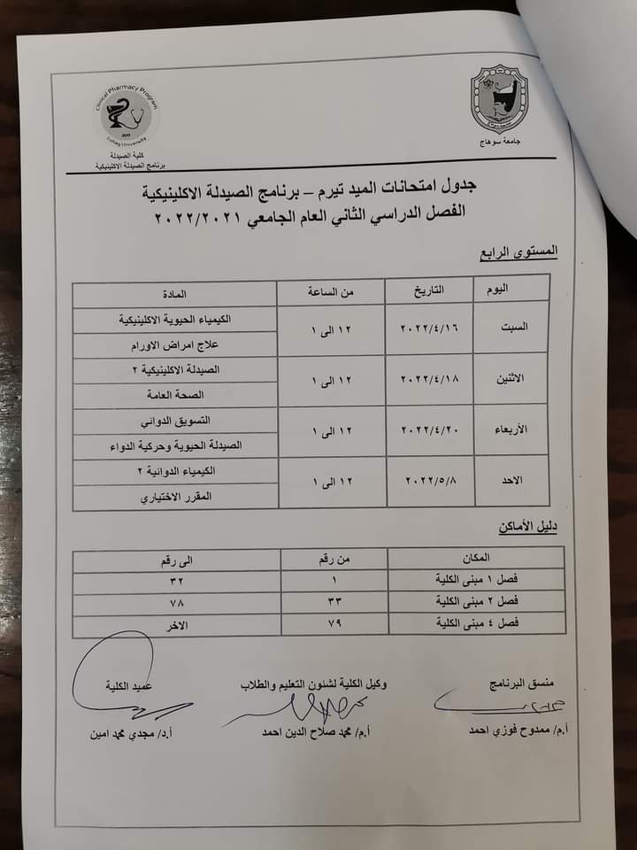 جدول إمتحانات الميدتيرم الفصل الدراسى الثانى لطلاب برنامج الصيدلة الإكلينيكية العام الجامعى ٢٠٢١ /٢٠٢٢م جدول إمتحانات الميدتيرم الفصل الدراسى الثانى لطلاب برنامج الصيدلة الإكلينيكية العام الجامعى ٢٠٢١ /٢٠٢٢م تصفّح المقالات جدول إمتحانات الميدتيرم الفصل الدراسى الثانى العام الجامعى ٢٠٢١ /٢٠٢٢مإعلان هام عن بدء مسابقة ” خماسيات كرة القدم ” ⚽ ومسابقة ” ثلاثيات كرة السلة ” 🏀