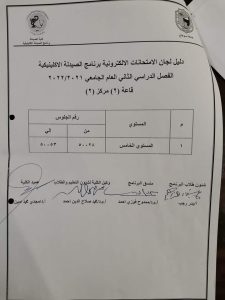 دليل لجان إمتحانات الفصل الدراسي الثاني برنامج الصيدلة الإكلينيكية العام الجامعى ٢٠٢١ /٢٠٢٢م بمركز الإختبارات الإليكترونية بالحرم الجامعي الجديد (الكوامل)