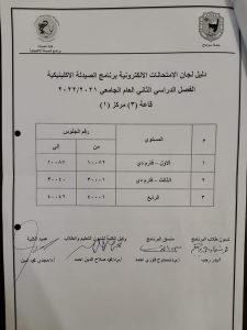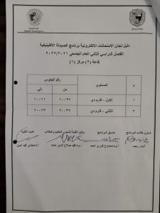 دليل لجان إمتحانات الفصل الدراسي الثاني برنامج الصيدلة الإكلينيكية العام الجامعى ٢٠٢١ /٢٠٢٢م بمركز الإختبارات الإليكترونية بالحرم الجامعي الجديد (الكوامل)