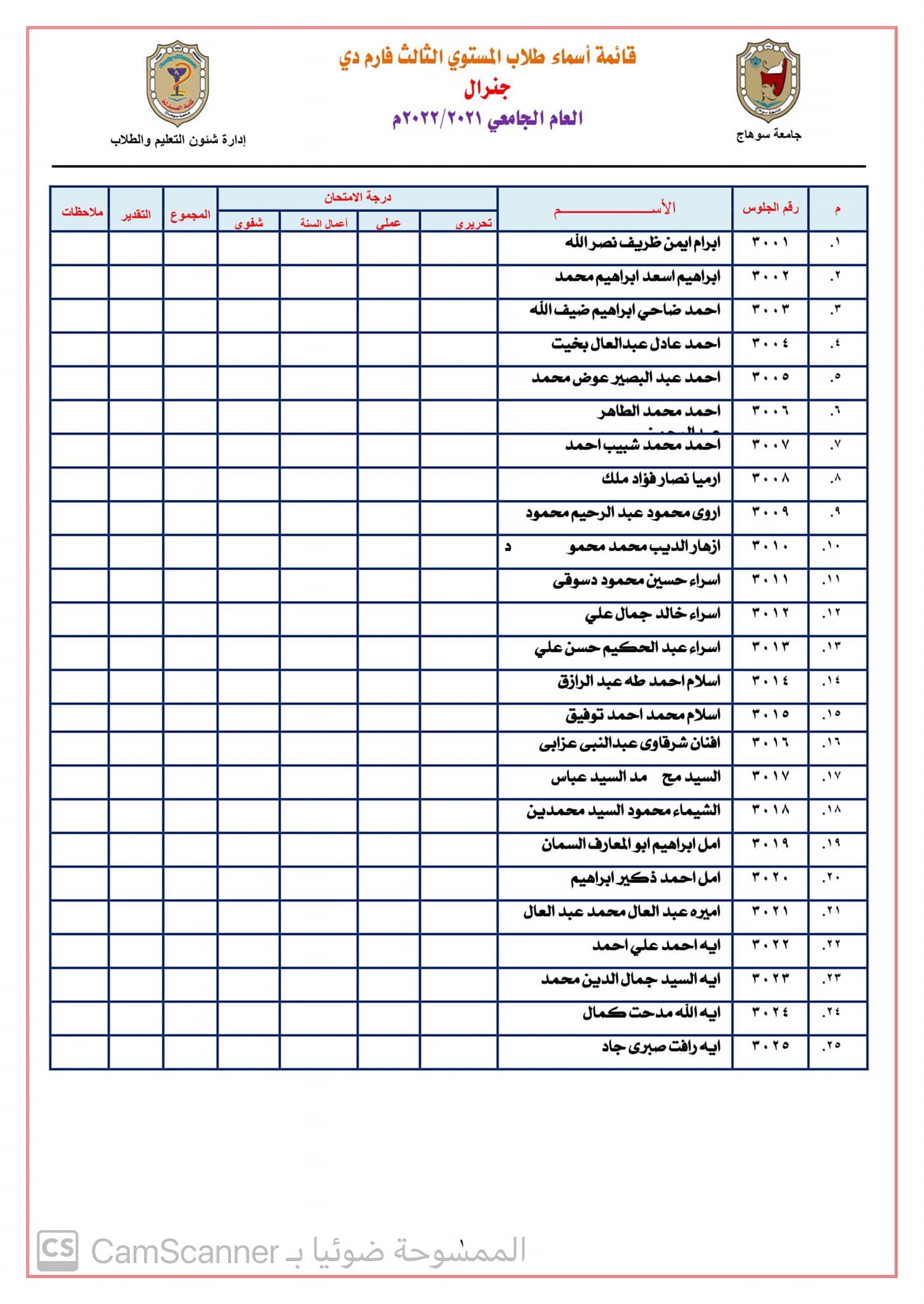 قوائم أرقام جلوس طلاب المستوى الثالث جينيرال