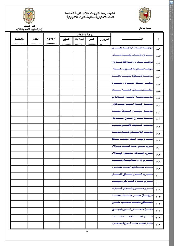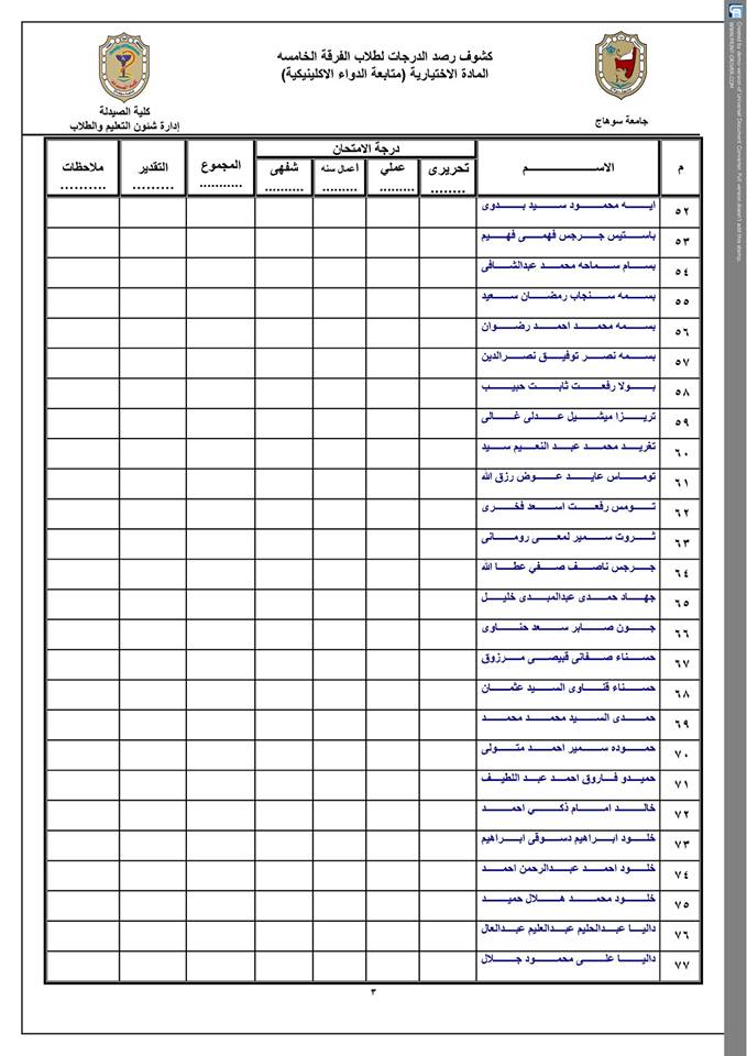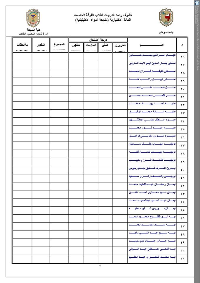 كشوف أسماء الماده الإختيارية (الفرقة الخامسة ) مادة متابعة الدواء الإكلينيكية . كشوف أسماء الماده الإختيارية (الفرقة الخامسة ) مادة متابعة الدواء الإكلينيكية . تصفّح المقالات كشوف أسماء المادة الإختيارية (الفرقة الخامسة )مادة تصميم الأدويةكشوف أسماء( الفرقةالخامسة ) مادة التحليل الصيدلى المتقدم .