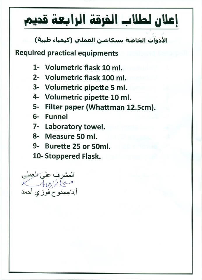 الأدوات المطلوبة والخاصة بسكاشن العملي للفرقة ( الأولي – الثانية – الرابعة قديم)