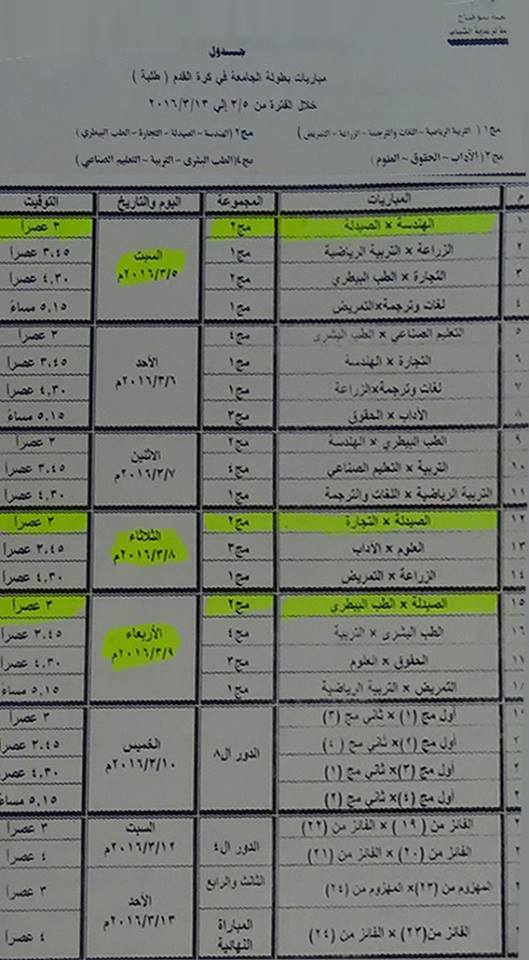 إعلان لمبارايات بطولة الجامعة لكرة القدم