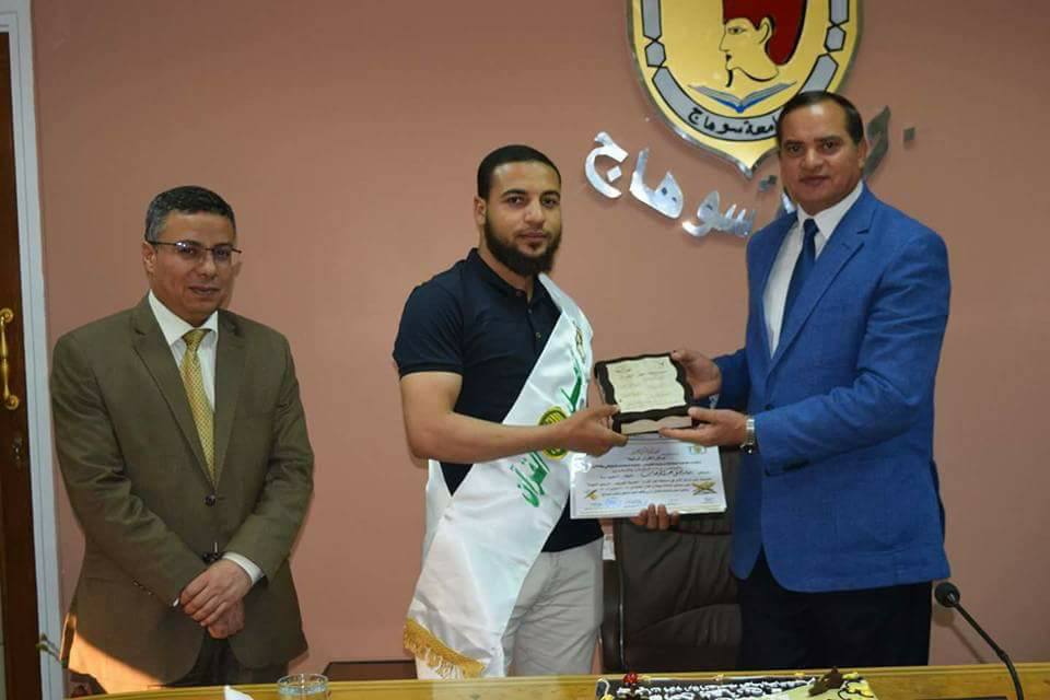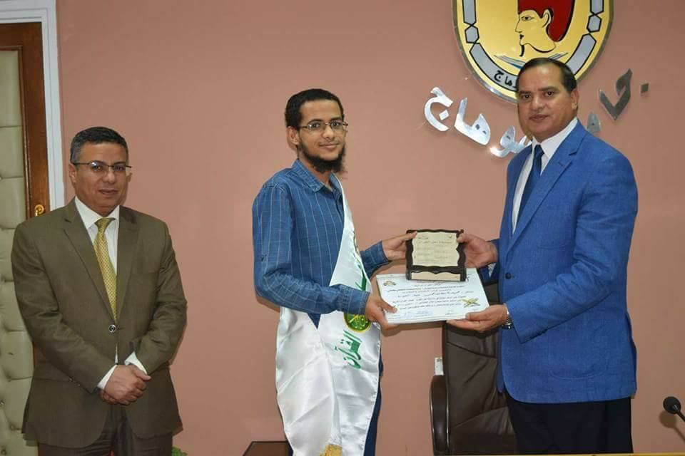 تكريم معالي الأستاذ الدكتور أحمد عزيز عبد المنعم رئيس الجامعة لطلاب كلية الصيدلة الحاصلين على المراكز الأولي فى مسابقة أهل القرآن