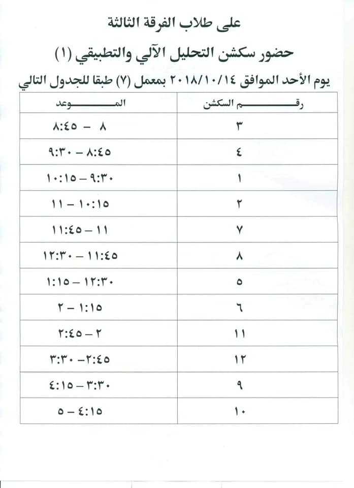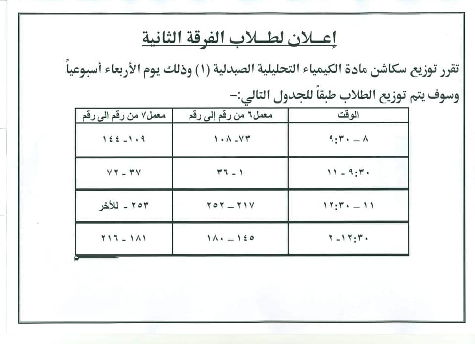 إعلان قسم الكيمياء التحليلية لطلاب الفرقة الثانية والفرقة الثالثة