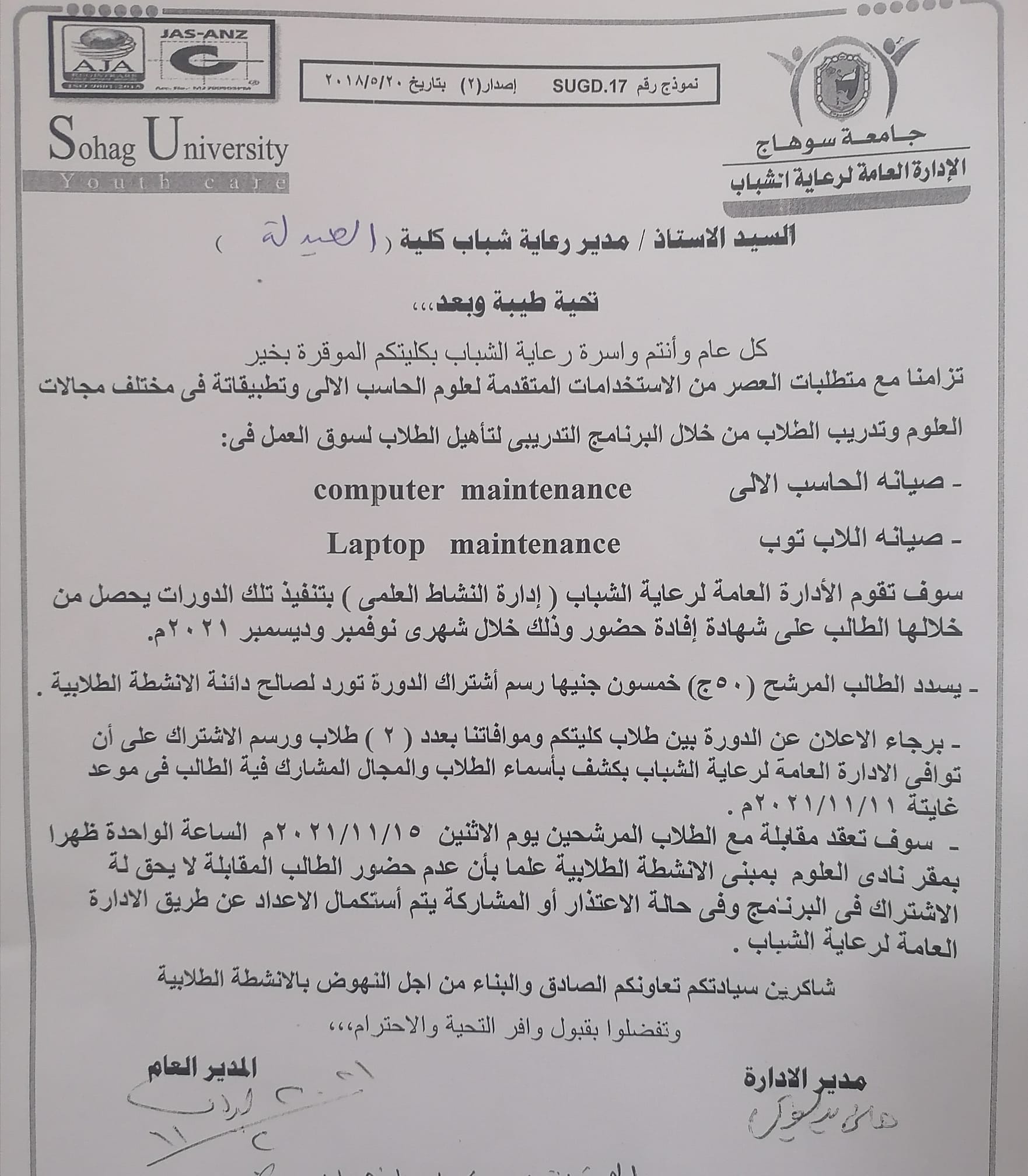 إعلان هام لطلاب الكلية إعلان هام لطلاب الكلية تصفّح المقالات إعلان هام للطلاب المقبولين بنظام الدمج وذوى الإحتياجات الخاصةرئيس جامعة سوهاج يستقبل أعضاء الإتحاد المصرى لطلاب الصيدلة لمناقشة خطة العمل المستقبلية