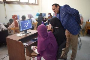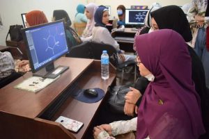 Under the patronage of Prof. Dr. Mustafa Abdel Khaleq, President of the University #Activities_of_the_second_day_of_molecular_modeling_workshop Prof. Magdy El-Kady, Dean of the Faculty of Pharmacy, Prof. Dr. Mohamed Salah, Vice Dean for Education and Student Affairs, and Dr. Mamdouh Fawzy, supervisor of the Department of Pharmaceutical Chemistry and Director of the Student Research Unit, followed the activities of the second day of the workshop organized by the Department of Pharmaceutical Chemistry in cooperation with the Student Research Unit at the Faculty of Pharmacy for students of the pharmacy program Clinical and students of the Faculty of Pharmacy, Sohag University, about how to use the chemdraw program, its importance, drug design, molecular docking, its role and importance in accelerating the discovery of drugs, as well as the dynamics of action of these drugs inside the body
